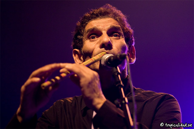 Hoewel balkan-muziek meestal met koperblazers geässocieerd wordt, staat bij Taraf de Haïdouks de viool centraal, of beter, frontaal. De ruggegraat van de band bestaat uit een contrabas en een cymbalom: een soortement piano waarbij met behulp van twee stokken op de snaren zelf tekeer gegaan wordt. "Te keer gaan" is hier allerminst misplaatst want deze vrolijke Roma-zigeuners gingen er vanaf het eerste nummer behoorlijk hard tegenaan. Ze brachten hun energieke, up-tempo muziekjes met een levensvreugde waar de gemiddelde Belg jaloers op mag zijn. Het valt moeilijk te verwoorden hoe zoiets klinkt — zo maak ik er mezelf natuurlijk makkelijk van af — al geeft dit video-fragmentje toch een indruk. Eenmaal lieten ze het tempo varen voor het meeslepende In a Persian Market waarvan het refrein de nekharen van uw trouwe frontstage reporter stevast recht overeind zette.